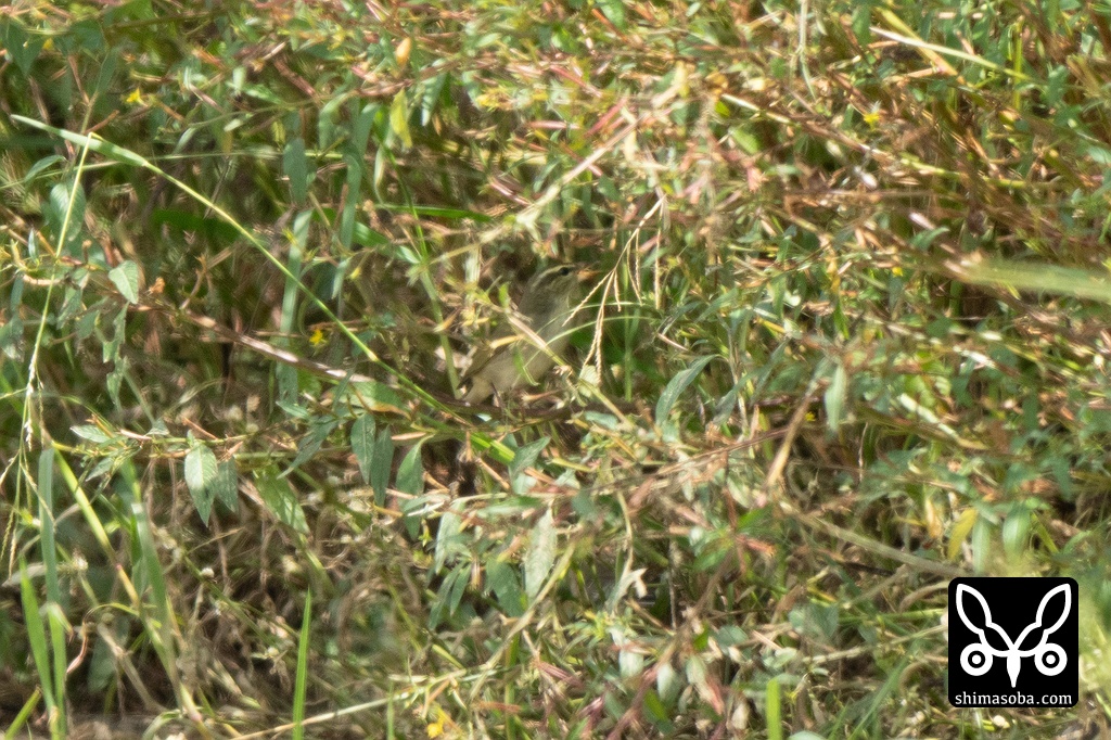 コムシクイも数羽の群れで飛来。コムシクイは渡ってきたばかりは、田んぼのこのような環境で複数羽で行動していますが、次第に分散して越冬地の縄張りを点在する灌木を中心に確保し始めます。