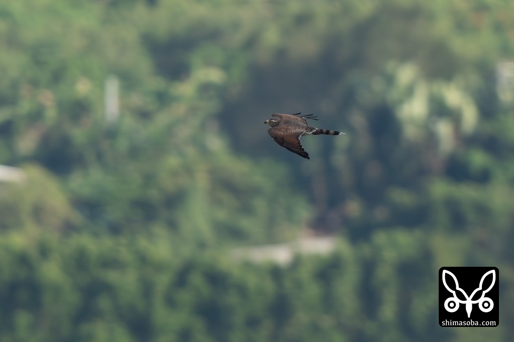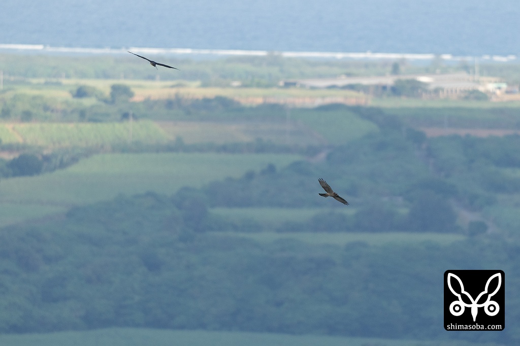 牧場を背に旋回するサシバ。