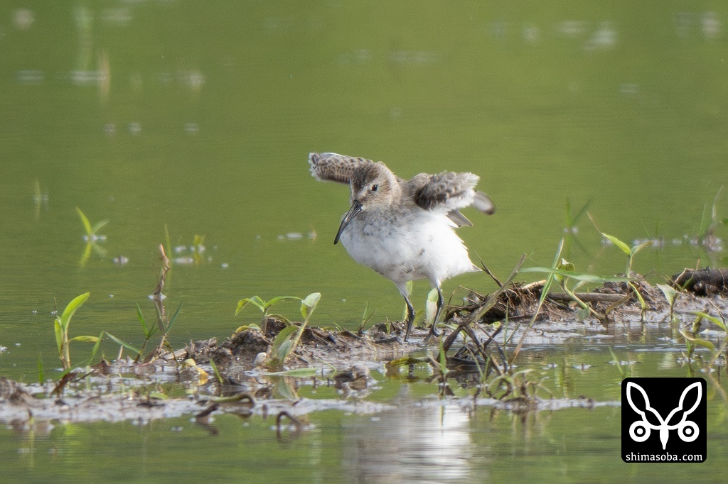 こちらは別のエリアのソリハシセイタカシギ。すれた幼羽が残っています。