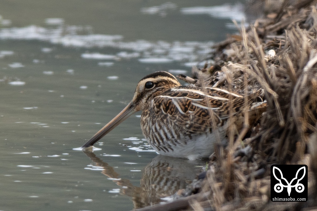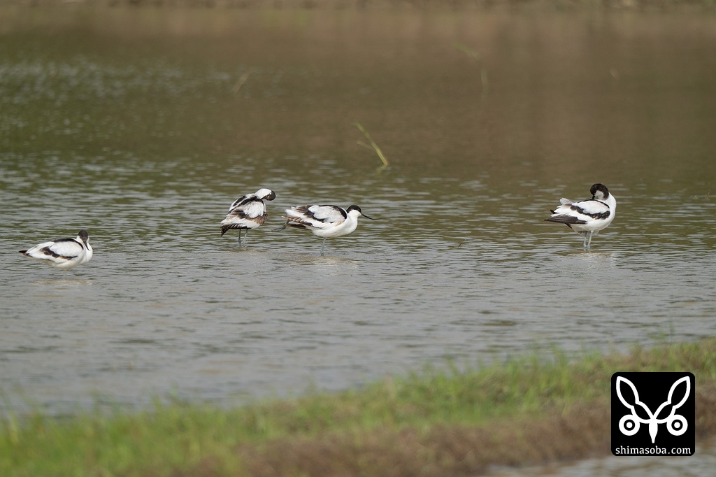 ソリハシセイタカシギは島内に複数が飛来。この日は4羽の群れと単独が2カ所の合わせて6羽を確認しました。田んぼではタゲリ、ムナグロ、シロチドリ、コチドリ、アオアシシギ、アカアシシギ、タカブシギ、ハマシギ、イソシギ、クサシギ、セイタカシギなどが越冬中です。