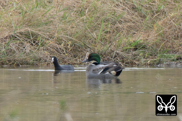 田んぼに警戒心のないオカヨシガモ。渡ってきたばかりなのか疲れた様子でした。