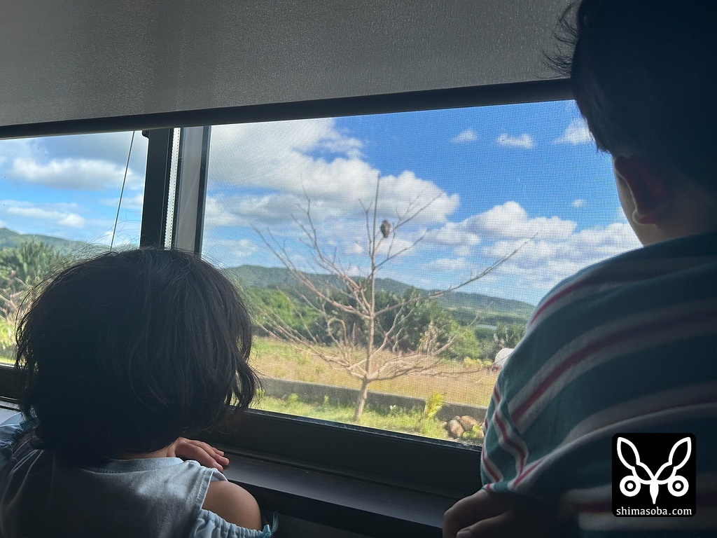 寝室からカンムリワシを観察する子どもたち。^^