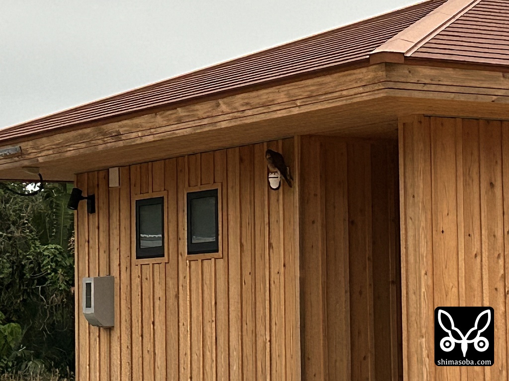 Omoto526の防犯カメラに止まるチョウゲンボウ。夜を明かしていきました。